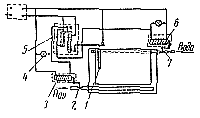 привод закрывает паровой кран 2. Одновременно замыкается цепь электромагнита 6
