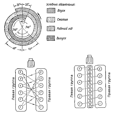 После определения угла открытия впускных клапанов первого цилиндра коленчатый вал повертывают на 360° и находят угол начала впуска шестого левого цилиндра.