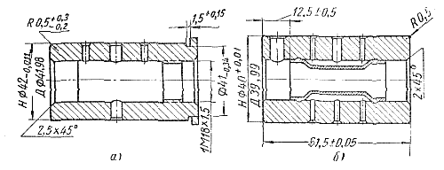 Рис. 98. Пальцы прицепных шатунов: а — шатуна со шпильками; б — шатуна со штифтами (H — номинальный размер, Д — допустимый без ремонта размер). |