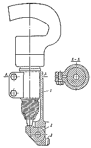 При наклепе щек используют специальную угловую надставку к пневматическому молотку (рис. 110). Разрезной корпус 1 зажимают винтами на шейке молотка. Его ударник действует на боек 3, посаженный на ось 2. Конец молотка свободно входит между щеками вала. Боковой выступ бойка ударяет по щеке вала. При правке наклепом деформация вала происходит не в зоне концентрации рабочих напряжений. После правки усталостная прочность валов почти не изменяется. Вследствие весьма малых деформаций щек в детали наблюдаются незначительные смещения, и поэтому повышается точность правки. Кроме того, обеспечивается большая устойчивость полученной правкой формы оси вала. Необходимая остаточная деформация для устранения биения вала может быть получена суммированием деформаций, вызванных наклепом на нескольких щеках. Oсь вала получается плавная, без изломов. Рис. 110. Надставка к пневматическому молотку для правки коленчатого вала. |